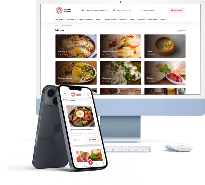 Платформа по созданию сайта для кафе и ресторанов с электронным QR-меню, доставкой и бронью столов. Простое управление стоп-листом. Любые изменения даже с телефона.