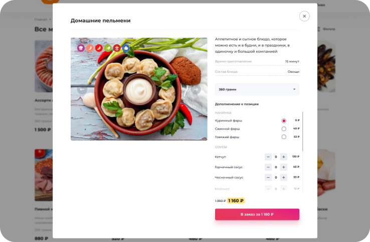 Более гибкое управление ценой и опциями для каждого блюда. При выборе блюда можно будет добавить индивидуальные опции.